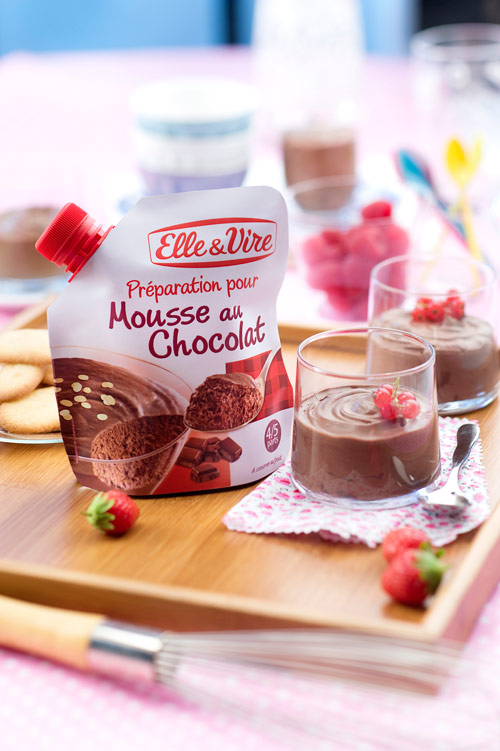Après la crème au chocolat, il était temps de passer à l’étape supérieure : la mousse ! Nous essayons donc la dernière préparation de la gamme “Elle & Vire”, destinée à ceux et celles ne maitrisant pas la délicate fonte du chocolat maison. J’en connais, mais si ! Donc un paquet, un batteur électrique (et oui, il faut un peu de matériel) et c’est parti.