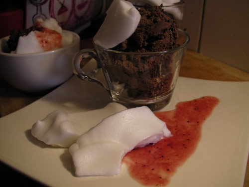 La préparation est réalisée avec du chocolat à 75% de cacao, et mise sur un goût peu amère, ce qui en fait un dessert très familial. J’avoue que j’aurai ajouté volontiers un fond de poivre ou peut-être un mélange de chocolat (à tester) pour lui donner plus de force. Des éclats de chocolat feraient aussi bon effet. Il doit y avoir moyen de s’amuser un peu avec ce produit. Et sans doute pourrait-il être un peu plus aéré en préparant les pots individuellement à l’avance.