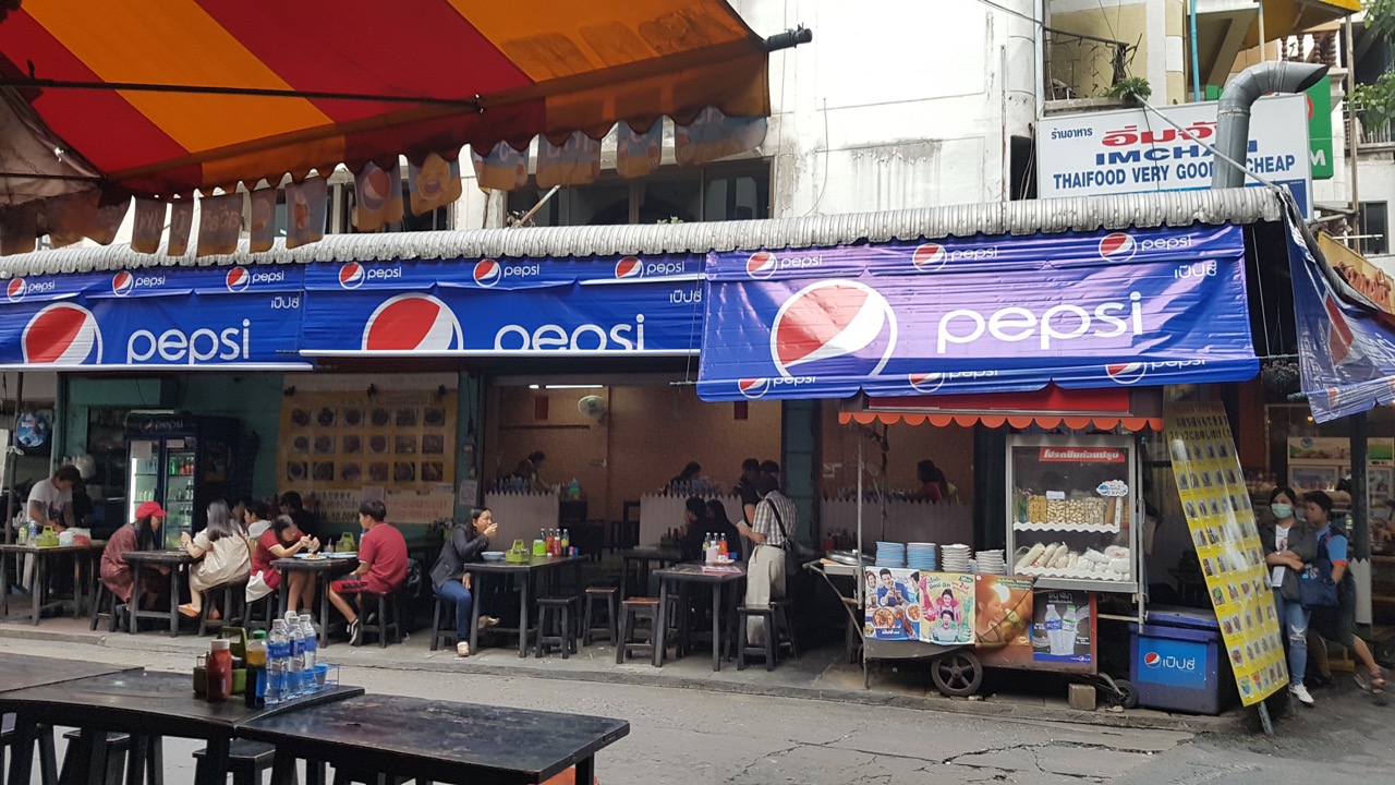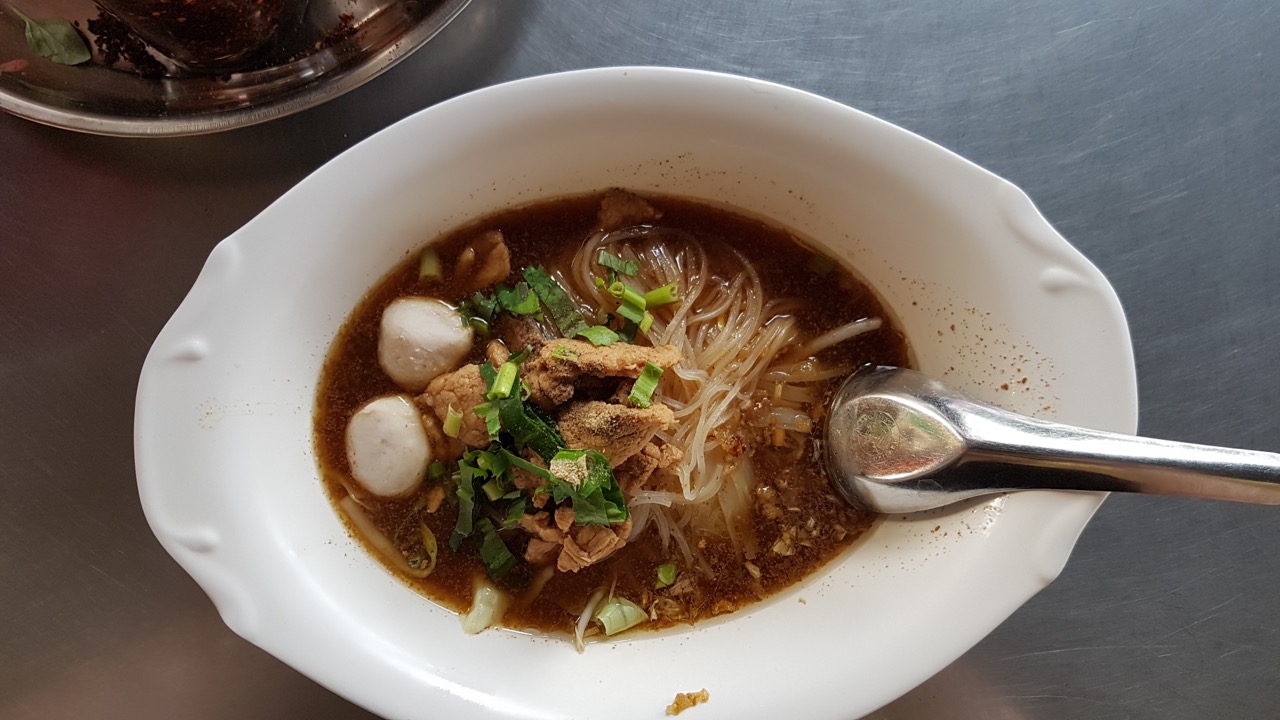 Je garde en mémoire deux repas très agréables. Le premier à proximité du Palais Royal où un femme derrière son stand à peine plus grand qu’elle avait installé quelques tables, et on pouvait y déguster des nouilles agrémentées de viande, très simplement au bord de la rue, à côté d’un policier et d’autres travailleurs locaux. Un autre repas était dans le quartier plus chic de Sukhumvit, où l’établissement était plus grand, mais en restant simple. « Im Chan » est à mi chemin entre le restaurant et la cuisine de rue. Les plats y sont différents, plus ou moins élaborés, mais locaux vraiment bons !
