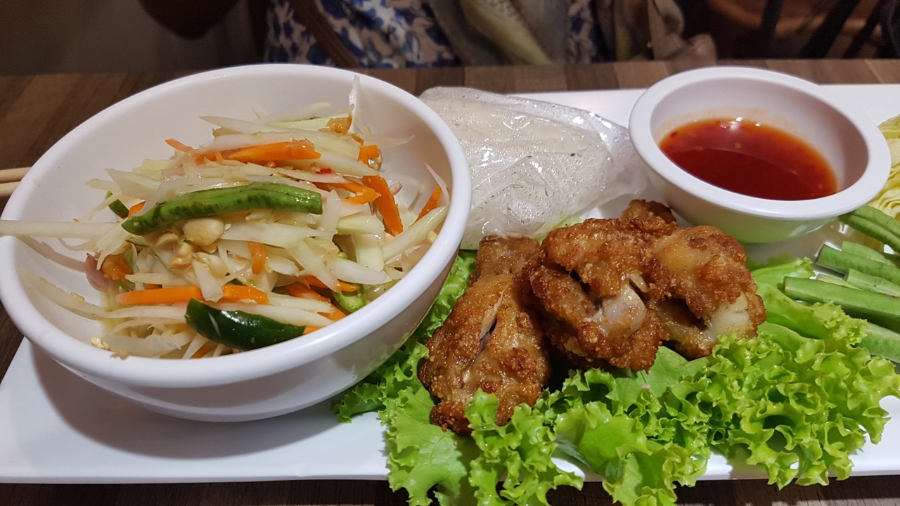 Riz et nouilles sont très présents, entre autres dans le fameux PadThaï sur lequel je reviendrai au travers d’un article dédié prochainement. On dit souvent que ces recettes sont très épicés, mais en toute sincérité je n’ai jamais eu la bouche en feu. En général les restaurateurs pros ou amateurs savent que notre palais est plus délicat et demandent si on veut « spicy ». Ne parlant pas thaï (et l’anglais n’étant pas toujours la bonne solution), l’imitation d’un jauge avec mon pouce allant vers le bas a réussi à expliquer que non, je n’étais pas trop fan de cuisine épicée !