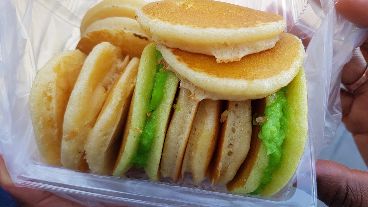 En journée, exit ces repas tout prêts. Cependant les échoppes sont toujours là pour vous ravitailler en cas de petites faims. Avec des températures de 30° (au mois de janvier, et oui c’était l’été là bas), les locaux et touristes peuvent par exemple repartir avec des fruits mixés, la mangue étant généralement à l’honneur. Pour ma part j’ai aussi craqué pour ce qui s’apparente à de petits blinis pour m’offrir une sorte de desserts sucrés (les desserts n’étant pas la force de la cuisine locale, en dehors du fameux riz/mangue), ainsi qu’à un pain aux allures crémeuses et garnis pour combler une petite faim. La garniture était sommaire, entre-autres avec des bouts de saucisses façon knacki (que l’on retrouve souvent dans ces plats « sur le pouce »), mais c’était bon et original, d’autant que le pain est également peu présent dans l’alimentation locale. C’était donc une bonne surprise !