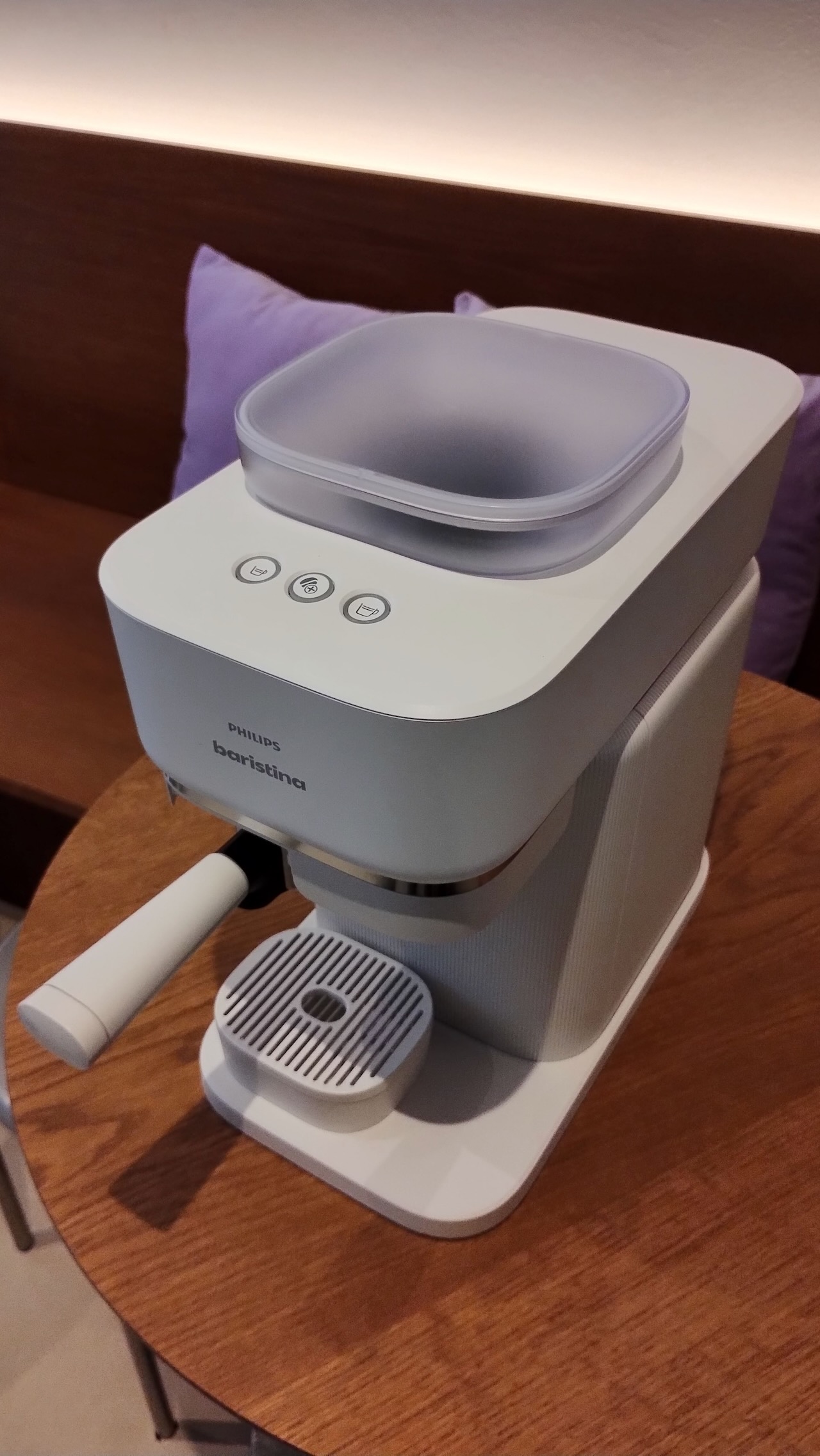 La nouvelle Philips Baristina Variety propose une solution différente, accès sur la simplicité. Compacte, la machine intègre deux réservoirs distincts pour recevoir deux types de grains différents. Un bouton rotatif permet de choisir le grain que l’on veut moudre, et il est également possible de faire son “blend” en mélangeant les deux types de grains. Ensuite, on sélectionne le café désiré : court, long, ou extra-intense (qui utilise un peu plus de café), et c’est tout. Il faudra certes vider le marc de café, mais cela est aussi facilité pour ne pas se salir.