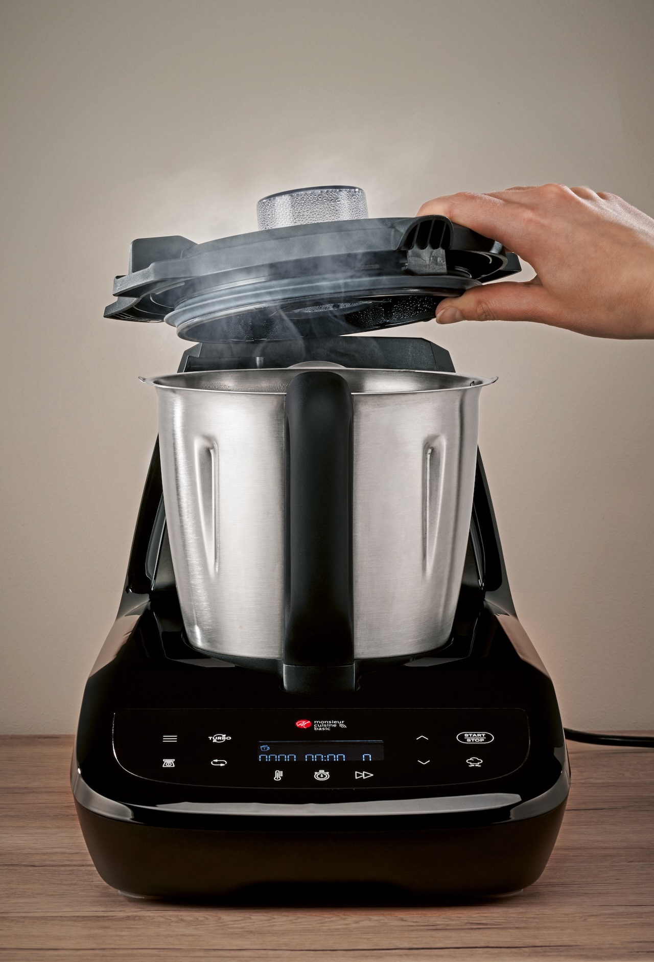 Il y a une fonction très demandée aujourd’hui, et qui se démocratise, c’est la balance intégrée. Et cela tombe bien, Lidl a décidé de l’intégrer à son appareil ! De plus, ce robot propose des programmes automatiques pour pétrir, saisir ou cuire à la vapeur. La connectivité est à la hauteur de ce que l’on attend aujourd’hui d’un tel appareil, grâce à la fonction cuisine guidée via l’application smartphone qui vous accompagne pas à pas pour chaque recette, le tout dans une interface voulue la plus intuitive possible.