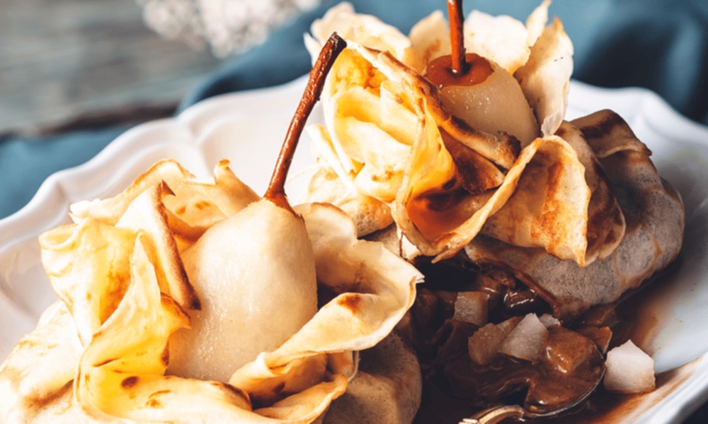 Cette recette gourmande vous propose de présenter des poires dans une aumônière. C’est très simple à réaliser, et visuellement attrayant. Pour apporter plus de saveur, et aussi du croquant léger, on va utiliser du sucre cassonade de La Perruche. Voila qui donne une allure plus moderne à la chandeleur !